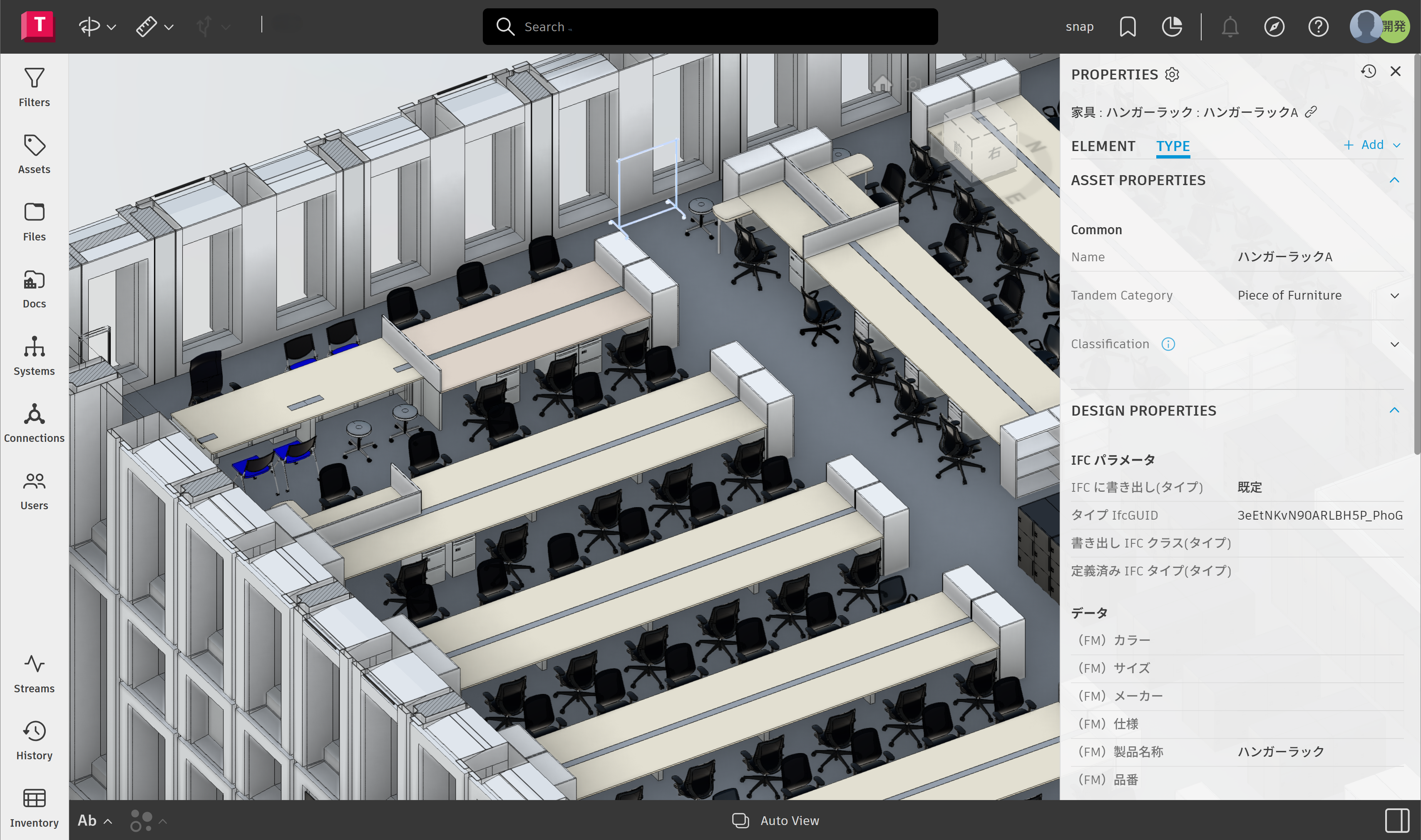建物の3Dモデルに固定資産情報や什器・設備の製品情報、取扱説明書などを一元化。資産の位置や形を視覚的に確認しながら必要な情報へ瞬時にアクセスすることが可能です。資産情報をまるっと見える化し、資産の棚卸しや什器管理といった職場の資産管理業務をサポートします。