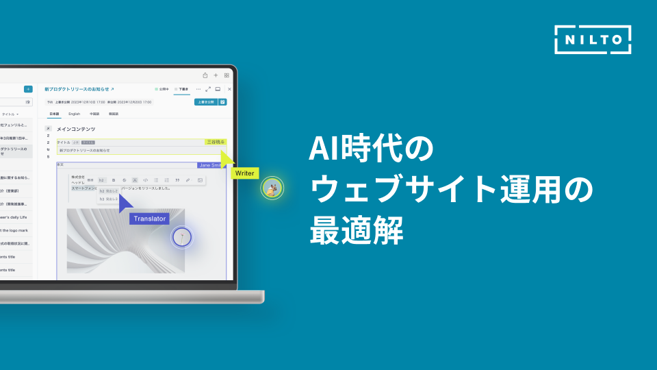 NILTOは、AI連携によりコンテンツ運用の効率化を実現するヘッドレスCMSです。大規模組織でも安心な複数サイトの一元管理や承認ワークフロー機能を完備。国産ならではの手厚いサポート体制も整えています。セキュアな環境でAIを活用し、スピーディーな多チャネル展開を目指す企業に最適です。ウェブサイトの運用に課題をお持ちの方はもちろん、サイトリニューアルや新規サービスの立ち上げをご検討中の方も、ぜひブースへお立ち寄りください。